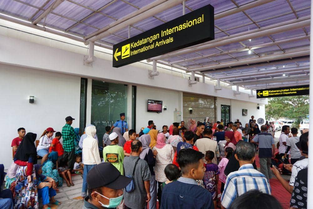 Sejak pukul 13.00 WIB, para keluarga TKI Malaysia sudah ramai berkumpul memadati Terminal Internasional Bandara Banyuwangi, Minggu (2/6). Ada yang membawa elf, mobil hingga rombongan sepeda motor.